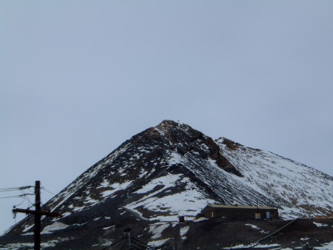 Barely visible at the summit is a cross erected to honor Robert Falcon Scott and 3 others who perished in their attempt to be the first to reach the South Pole.